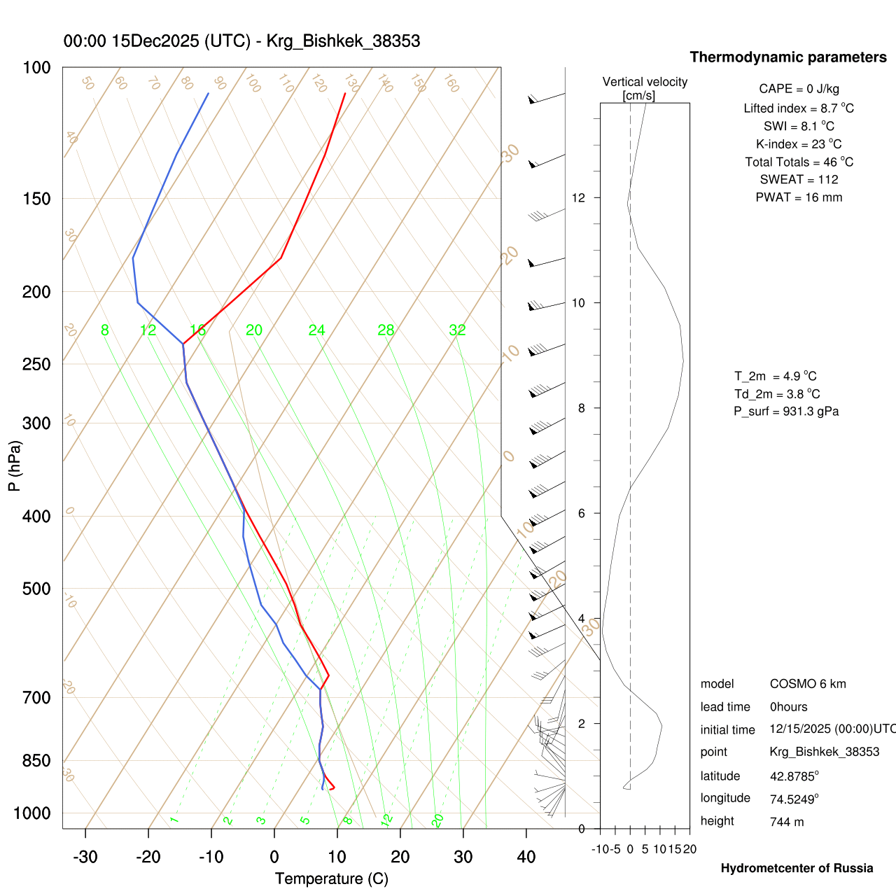 Прогнозы погоды по пунктам (аэрологические диаграммы) модели COSMO c разрешением 6.6 км
